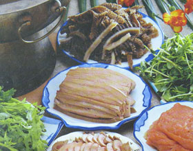 3.食用时,先将牛脊髓放入火锅内烧沸,其他原料装盘,随吃随烫。